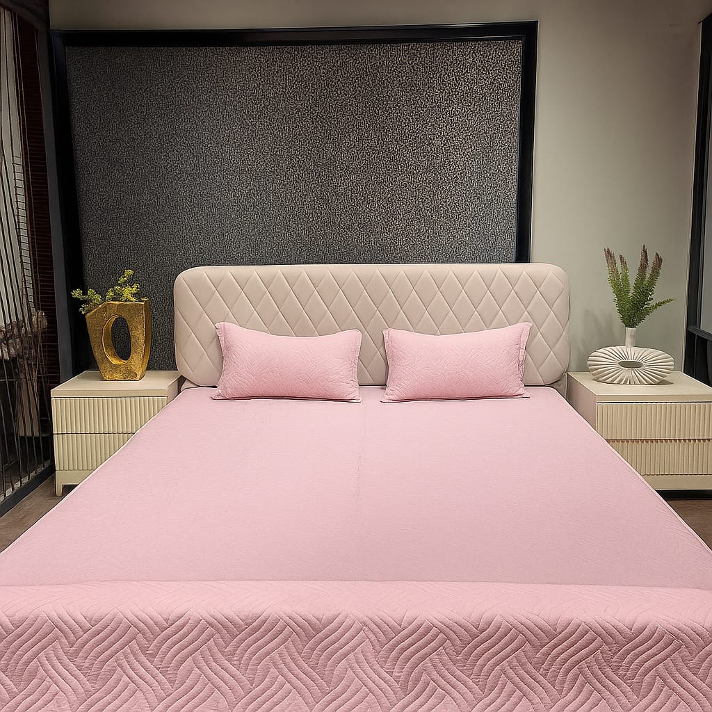 Crafted with a modern sense of minimalism and elegance, the bedcover features a soft pastel pink ideal for creating a calm and welcoming bedroom ambiance. The shade reflects light gently, adding a warm glow to the room without overwhelming the senses. Whether your interior leans toward modern, contemporary, bohemian, or classic styles, this bedcover blends effortlessly, offering a timeless appeal.