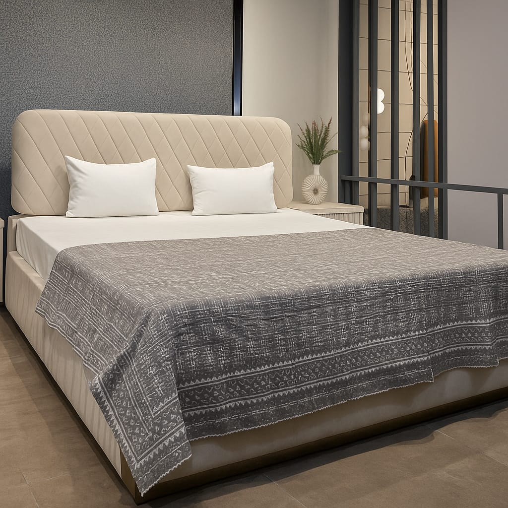 Add a touch of artisanal elegance to your home with this beautifully handcrafted Kantha bedcover. Inspired by traditional Indian textile art, this bedcover features intricate Kantha stitching that combines heritage with modern style. Each piece is a testament to skilled craftsmanship, making it not just a bedding item, but a statement of timeless artistry.